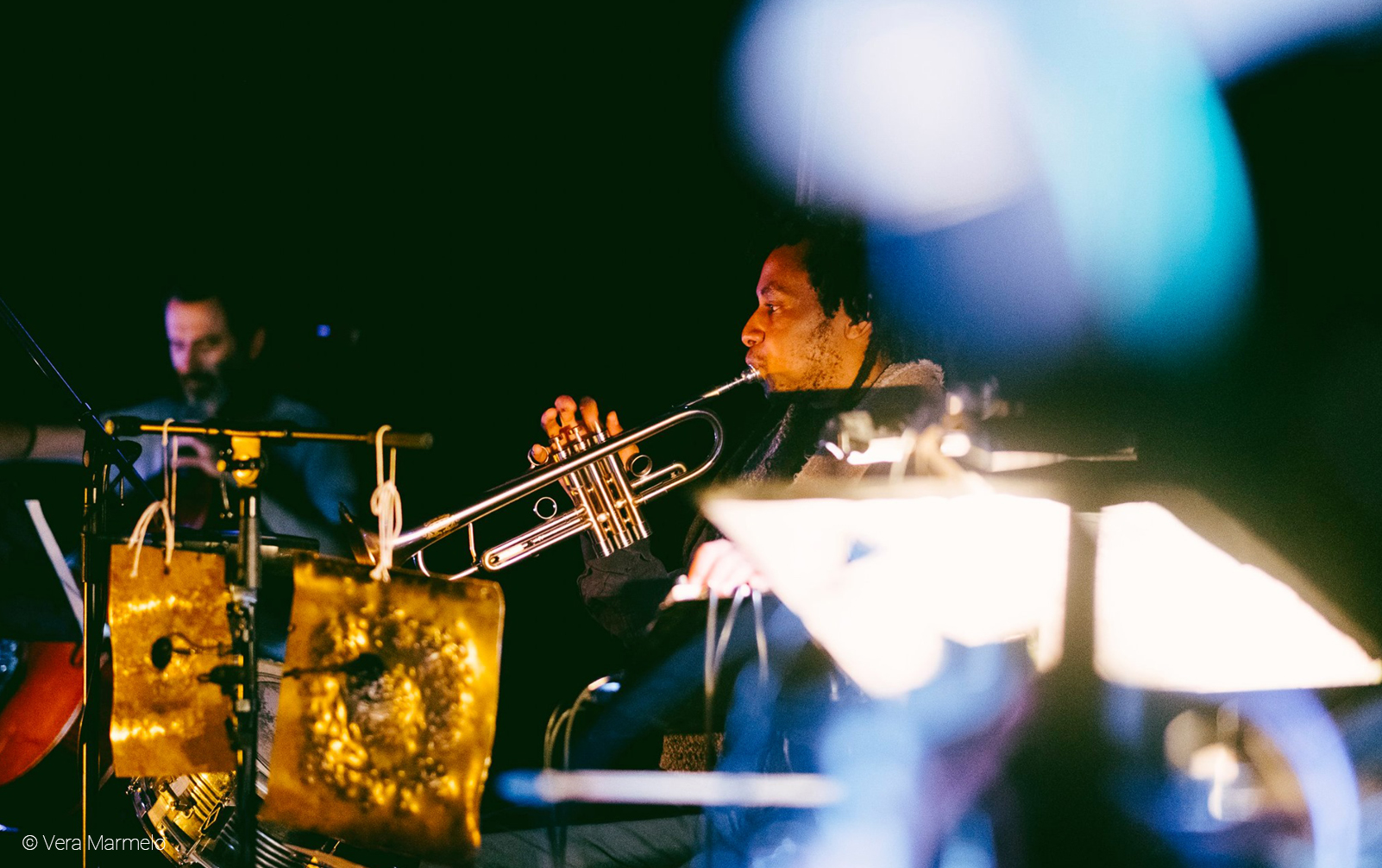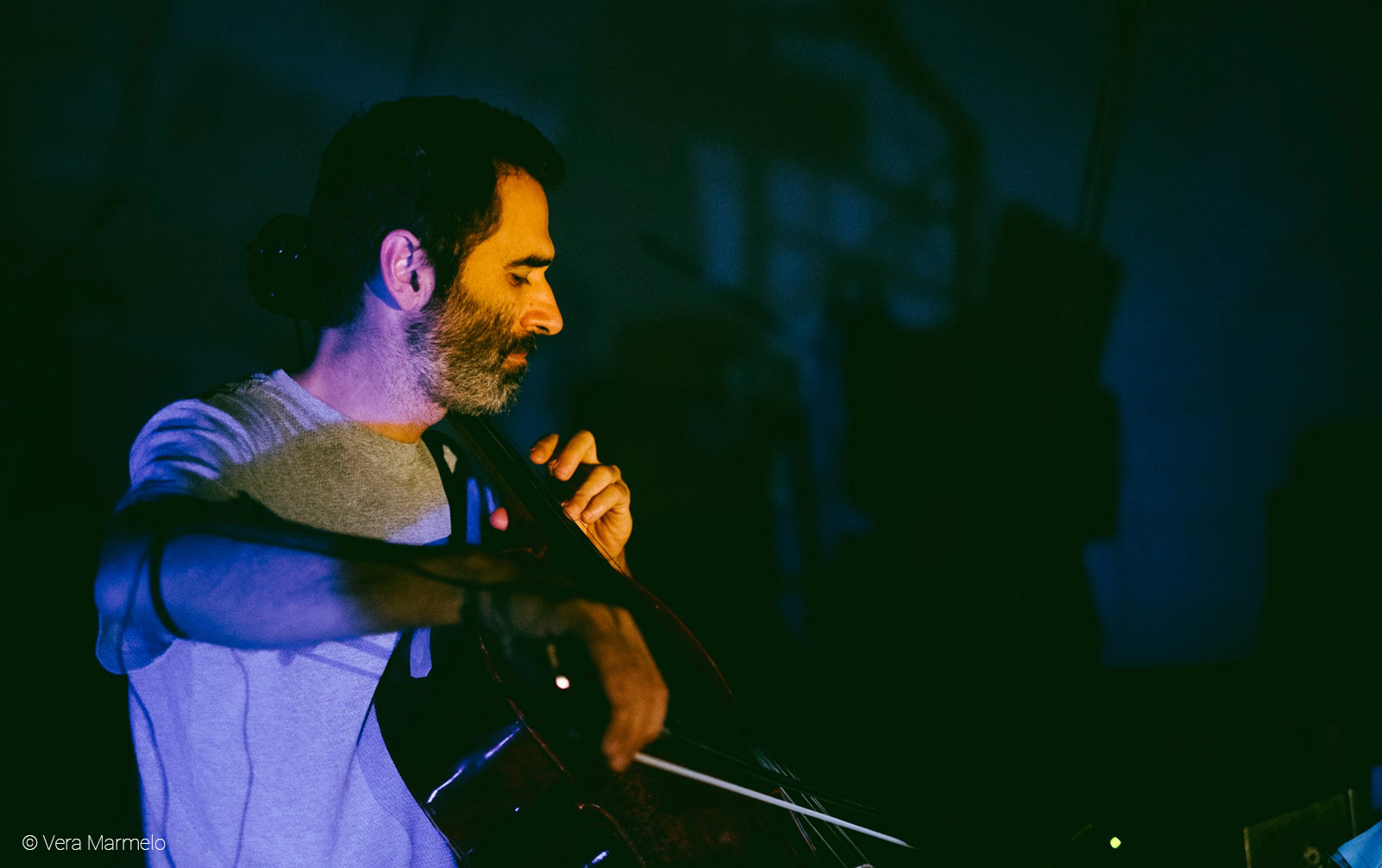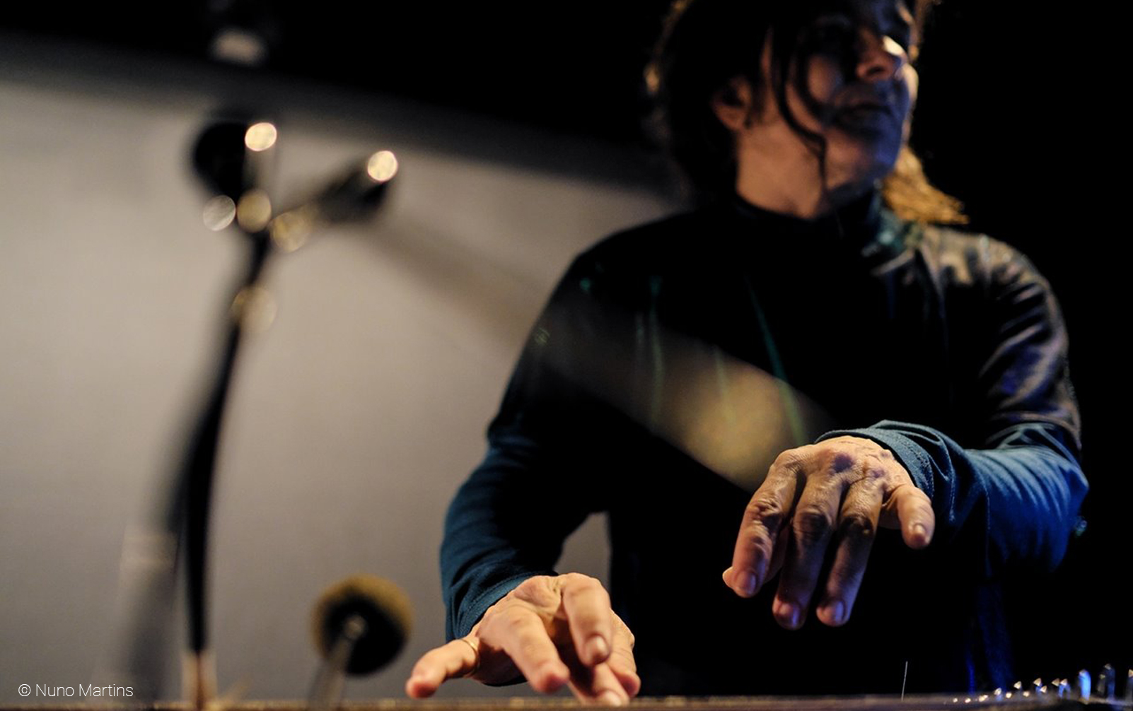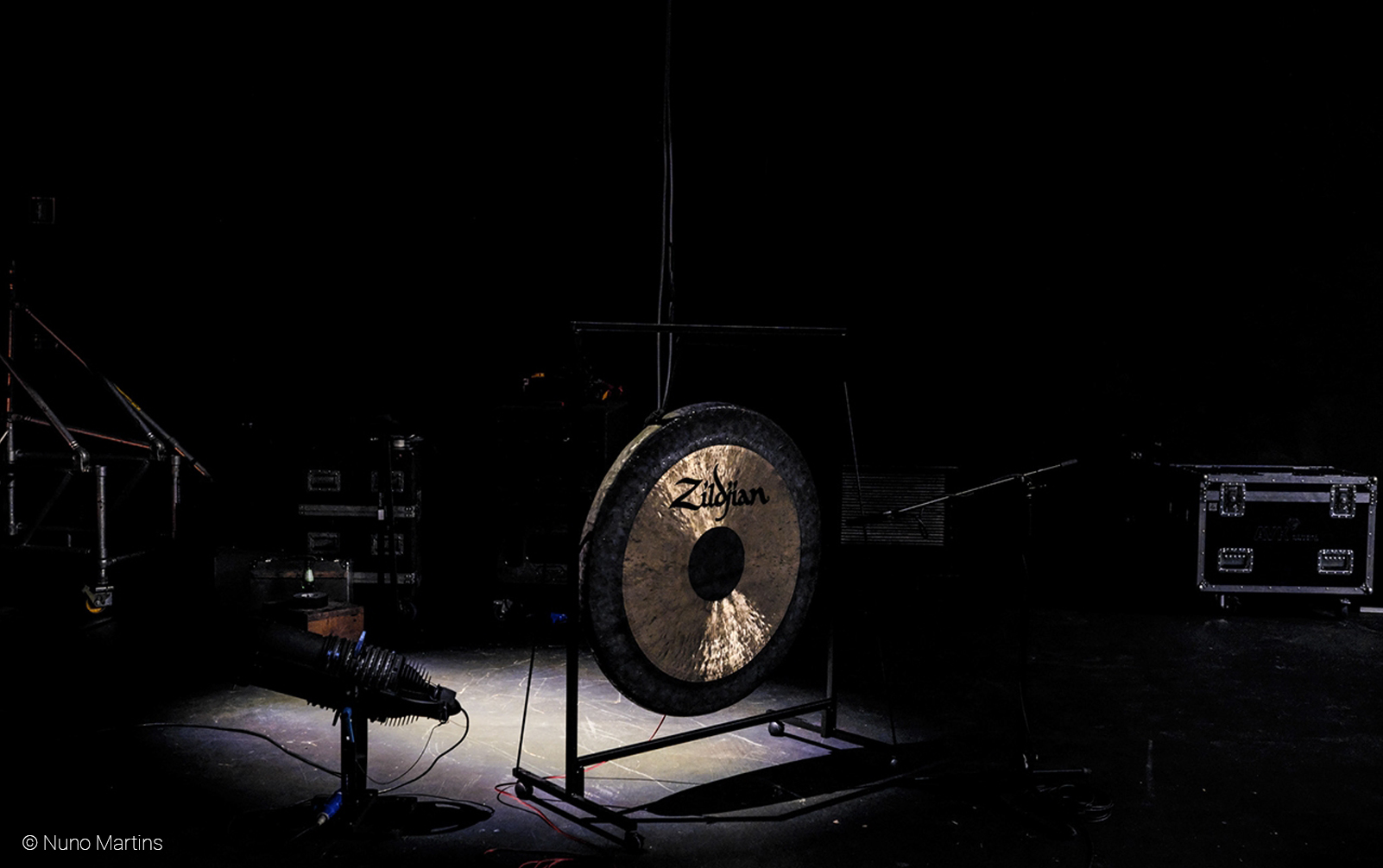 With a concept, score, interpretation, light design and space arrangement developed in collaboration, the work process is grounded on a common will: to discover a specific musical idiom with invented and modified instruments, while considering that music involves vision and space, beyond audition. The configuration of these instruments motivated the development of compositional strategies from each of the members. The work explores diverse ways of multiplying and confounding their identities, while shifting attention in-between performers, surrounding environment and other imaginary places. It drives perception through melodies of floating tonal centers, atonal moments, noisy dialogues and theatrical soundscapes.