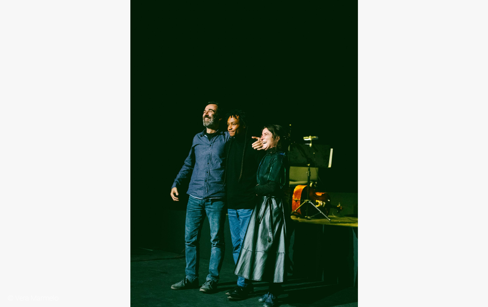 Trio formed by Adriana Sá, Ricardo Jacinto and Yaw Tembe to develop a new music-stage work for the opening of the concert series of Teatro do Bairro Alto.