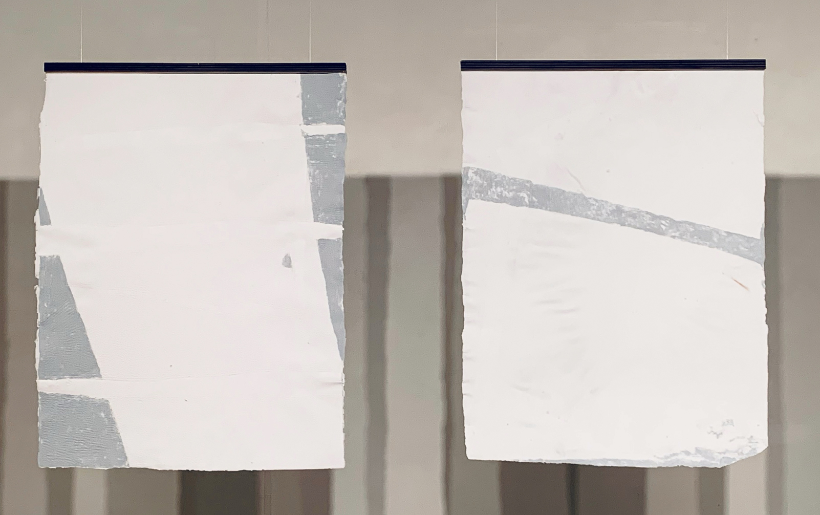 S/ Título (série #j 2.1 a 2.5) – polpa de papel de algodão branca e azul
