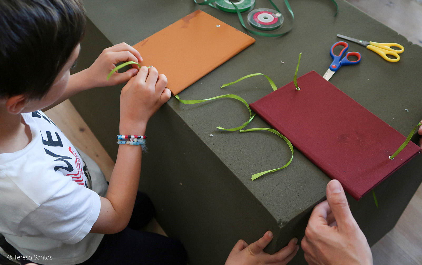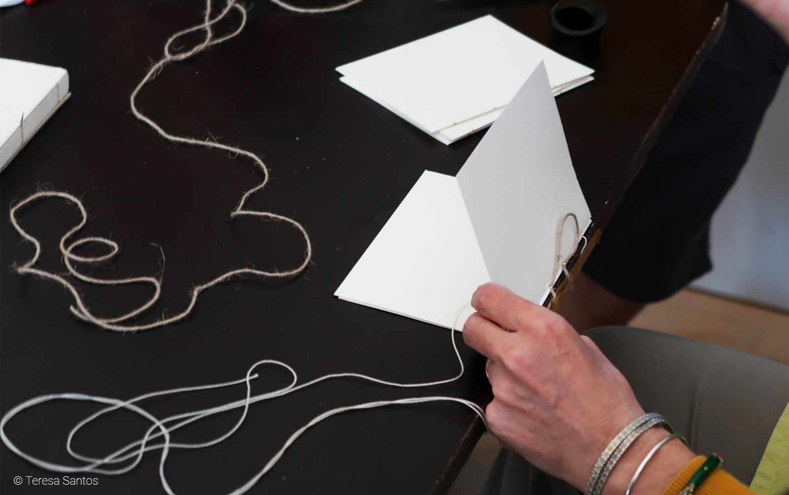 Workshop on learning various bookbinding and bookbinding processes. In this workshop, we cover the construction of a book from start to finish: cutting and folding the pages, sewing and gluing the sheets, to assembling the cover and its composition. We also learn how to create boxes and covers for presenting works and gather ideas for showcasing the work in the village of São Gregório.