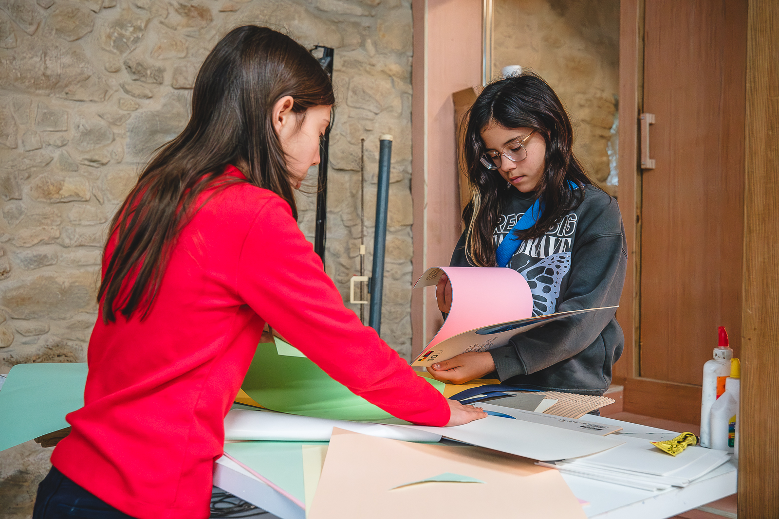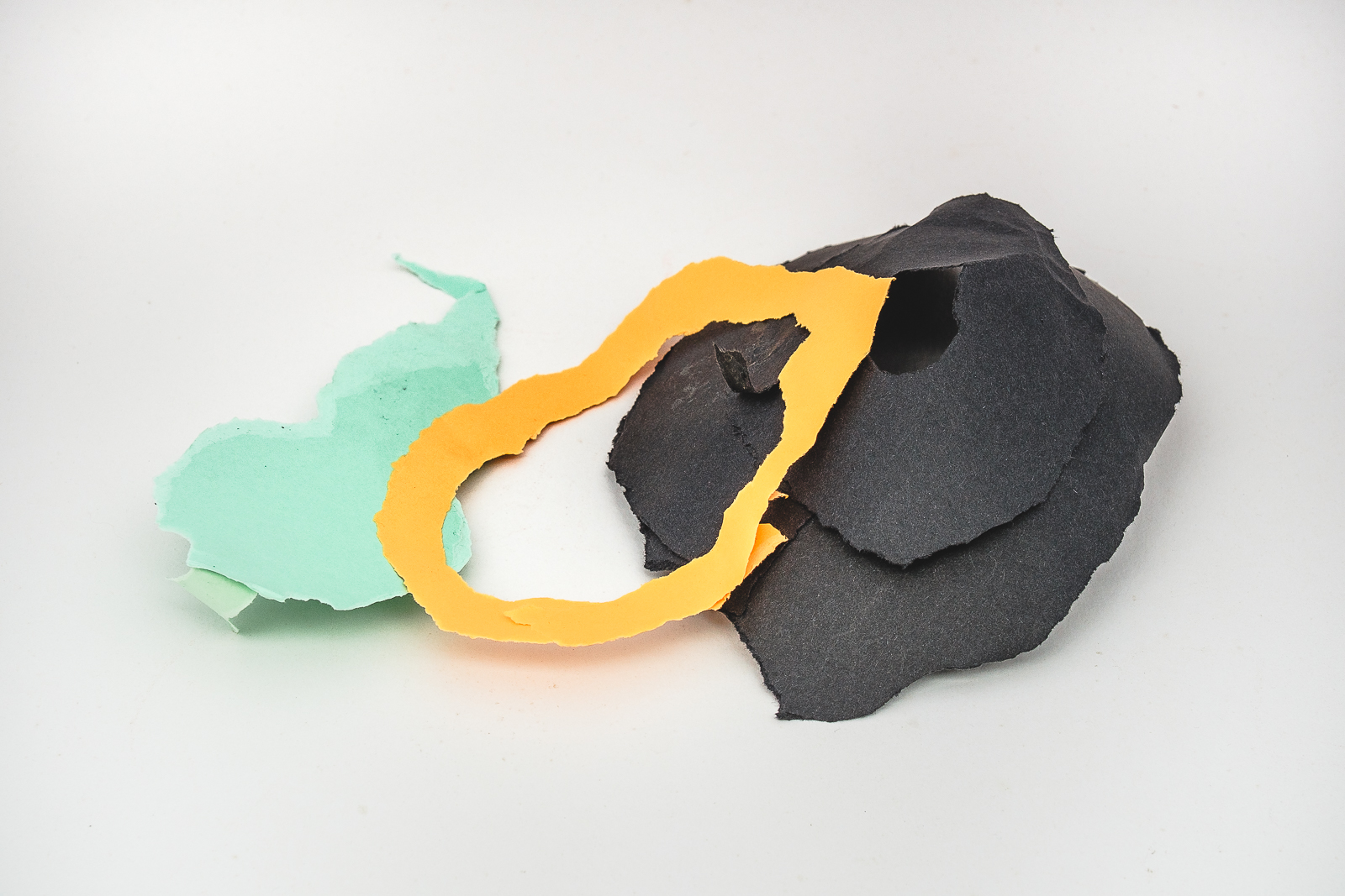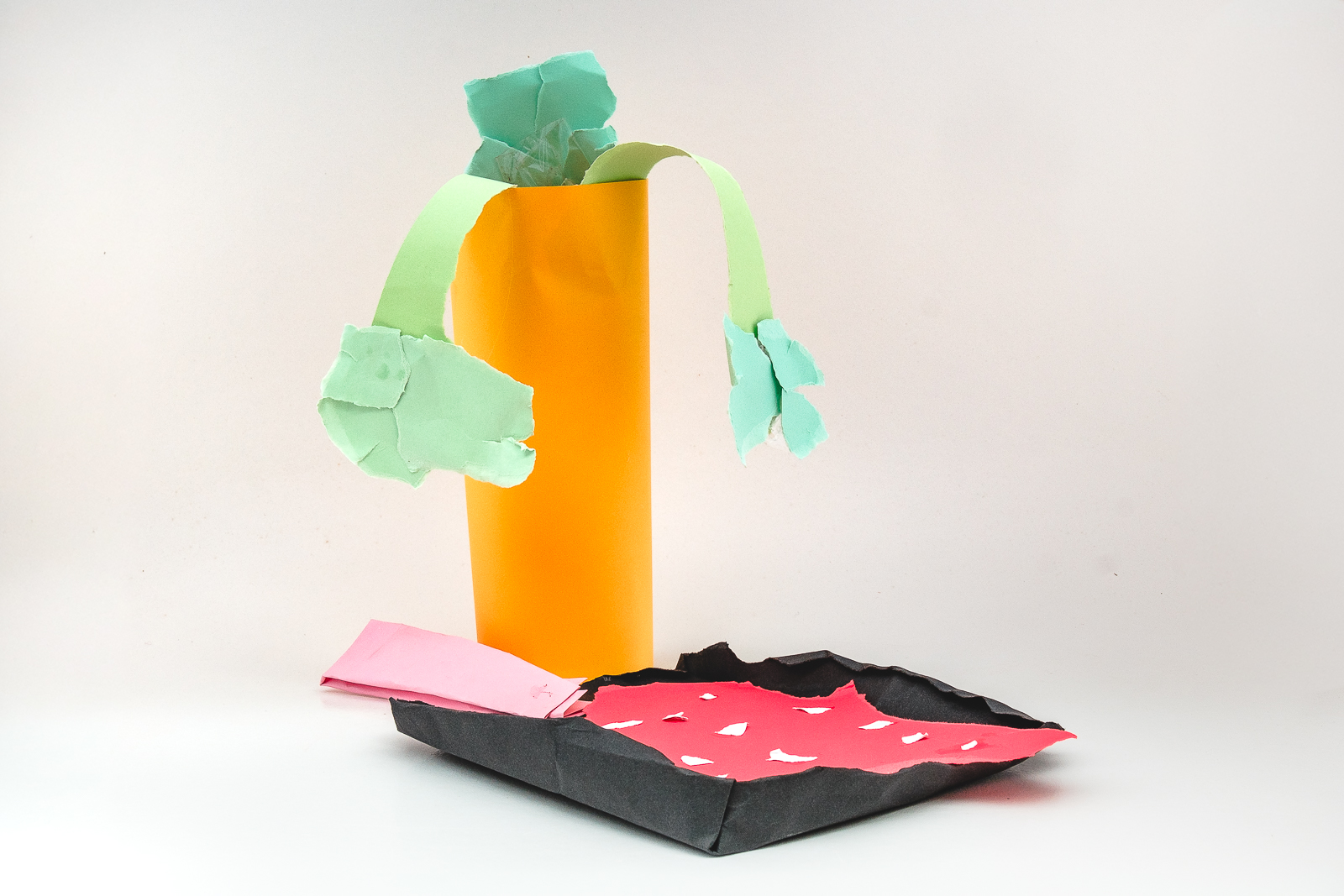 In this experience, observational drawing and the concepts of form and volume were explored using only colored paper, hands, and glue. Folding, tearing, piercing, gluing, and assembling became creative gestures, giving rise to compositions and small sculptural forms—without the use of conventional materials such as pencils, brushes, or paint.