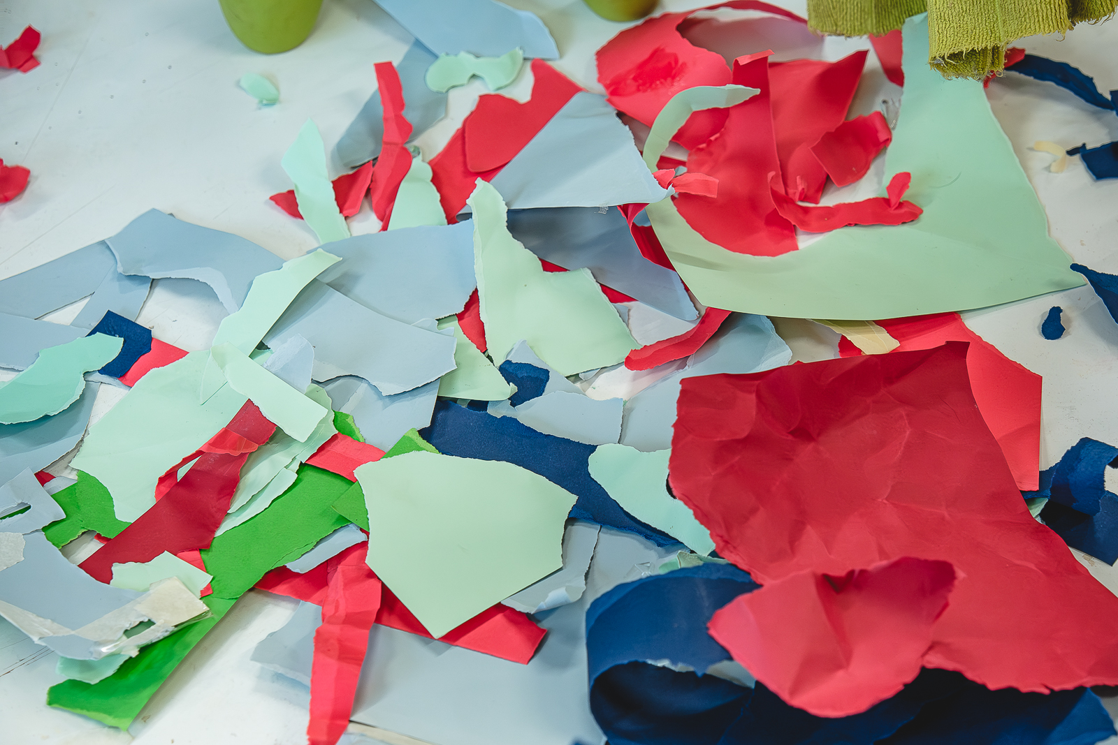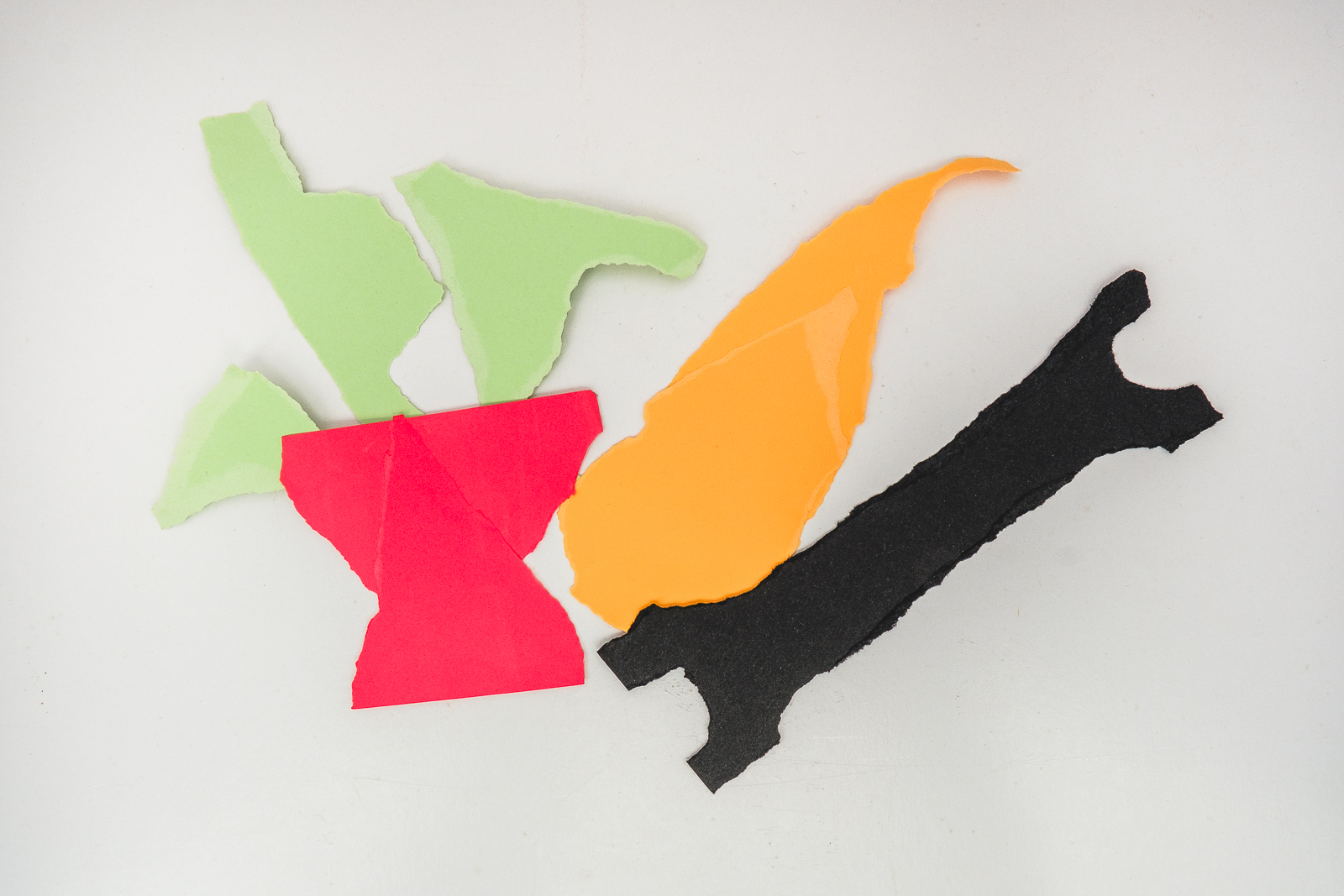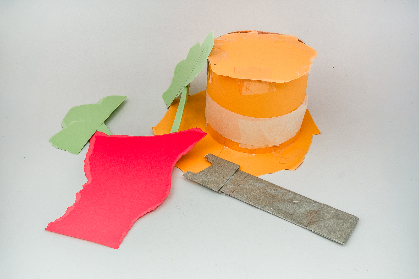 In this experience, observational drawing and the concepts of form and volume were explored using only colored paper, hands, and glue. Folding, tearing, piercing, gluing, and assembling became creative gestures, giving rise to compositions and small sculptural forms—without the use of conventional materials such as pencils, brushes, or paint.